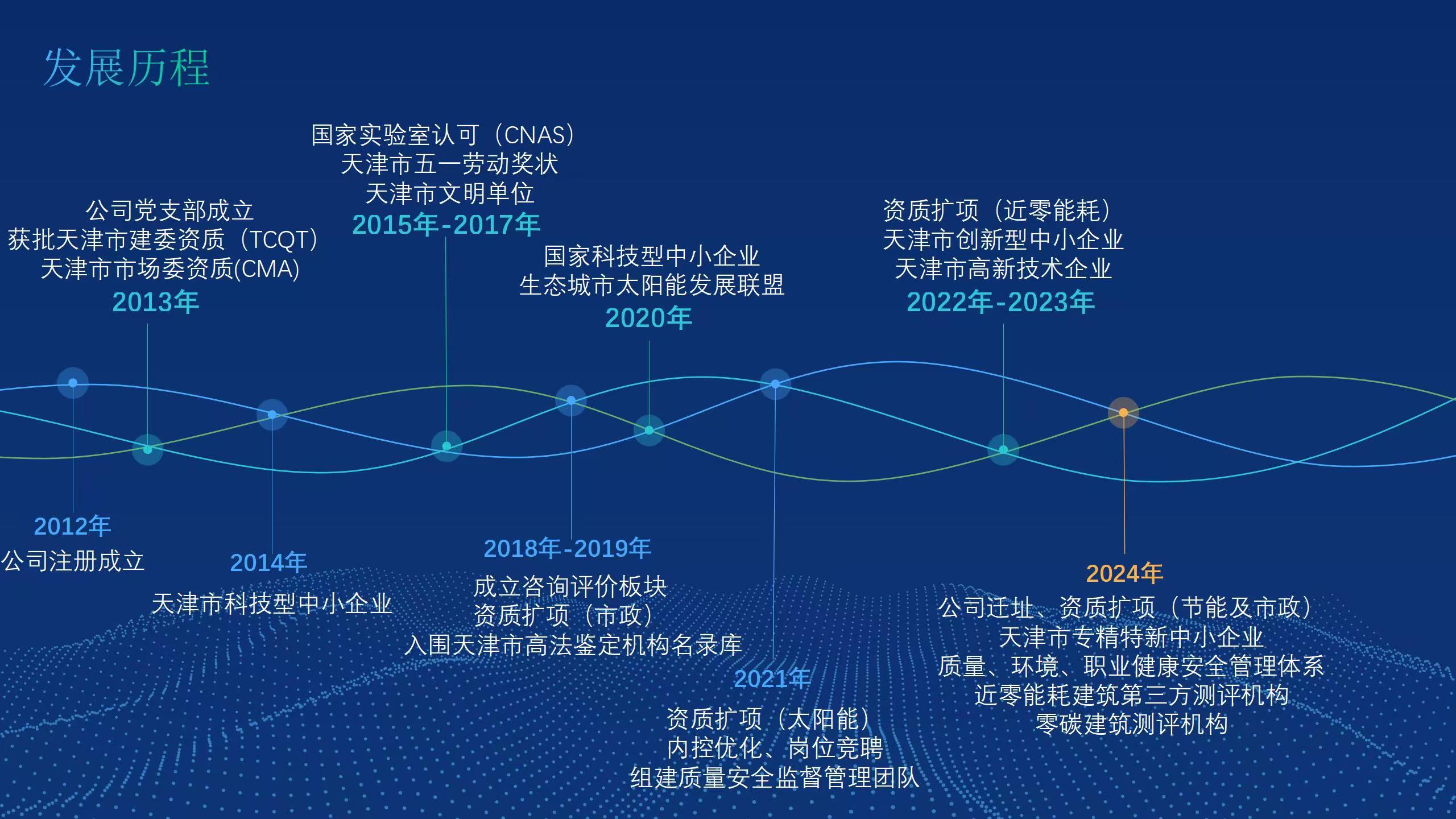 公司發(fā)展至今,技術(shù)能力不斷拓展和提升。現(xiàn)已具備檢驗檢測機(jī)構(gòu)資質(zhì)(簡稱CMA)、天津市建設(shè)工程質(zhì)量檢測機(jī)構(gòu)資質(zhì)、中國合格評定國家認(rèn)可委員會實(shí)驗室認(rèn)可資質(zhì)(簡稱CNAS)等資質(zhì)。同時,公司已被認(rèn)定為高新技術(shù)企業(yè)、天津市專精特新中小企業(yè)、濱海新區(qū)首家近零能耗建筑第三方測評機(jī)構(gòu)。公司主要從事建筑材料及構(gòu)配件、主體結(jié)構(gòu)及裝飾裝修、建筑節(jié)能、道路工程等檢驗檢測服務(wù),以及綠色建筑節(jié)能評估、近零能耗、房屋質(zhì)量安全鑒定等咨詢服務(wù)業(yè)務(wù)。公司在冊員工為60人,其中高級職稱30名,中級職稱20名,初級職稱10名。